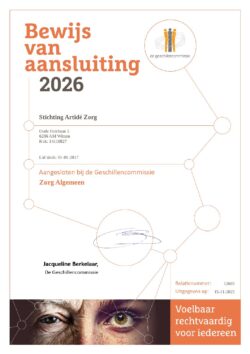 Indien u een klacht heeft dan kunt u zich wenden tot onze klachtenfunctionaris. Lukt het niet om samen een oplossing te vinden? Dan kunt u uw klacht voorleggen aan De Geschillencommissie Zorg.